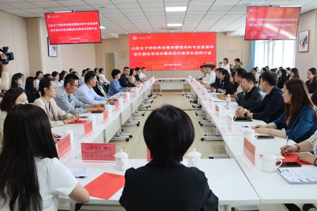 招聘会后,学校召开政校企座谈交流研讨会,吕晓黎代表学校对省民政厅以及企业的支持表示感谢,介绍了学校办学特色以及健康养老学科专业布局与规划。她指出,近年来学校注重紧密对接服务区域经济社会和妇女儿童老龄事业发展,重点打造儿童发展+、老年服务+、信息技术+等优势特色专业集群。学校于2020年创办全国首批、山东省首家养老服务管理本科专业,以国家一流本科专业建设点社会工作专业为基础,组建了健康养老专业集群。先后获批“山东省健康养老研究中心”、“基于数字化的养老服务文科实验室”等省级团队与科研平台。目前在研的国家社科基金项目、民政部、教育部等省部级以上科研项目60余项,发表高水平论文80余篇,获批山东省教学成果奖一等奖1项,二等奖2项。吕晓黎表示将进一步加强学校与企业的深度交流合作,不断提升人才培养质量。