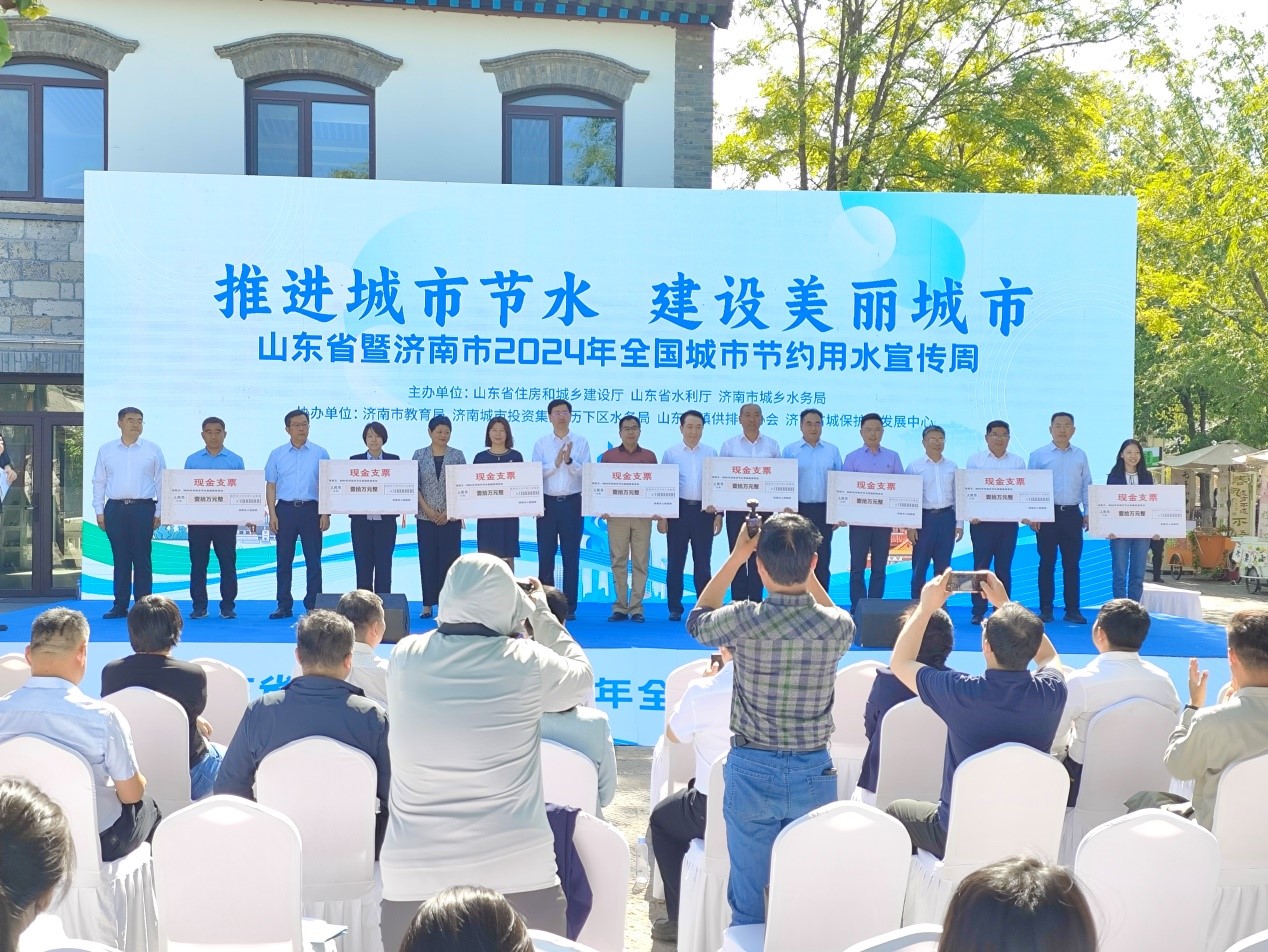 为深入贯彻黄河流域生态保护和高质量发展重大国家战略,落实国家节水行动,切实增强节水宣传影响力和感染力,5月13日上午,山东省暨济南市2024年全国城市节约用水宣传周活动在济南百花洲广场举行,省住房和城乡建设厅、省水利厅、济南市人民政府向2024年度济南市节约用水奖励获奖单位颁发了荣誉证书和奖金,学校荣获一等奖,奖励现金100000元。