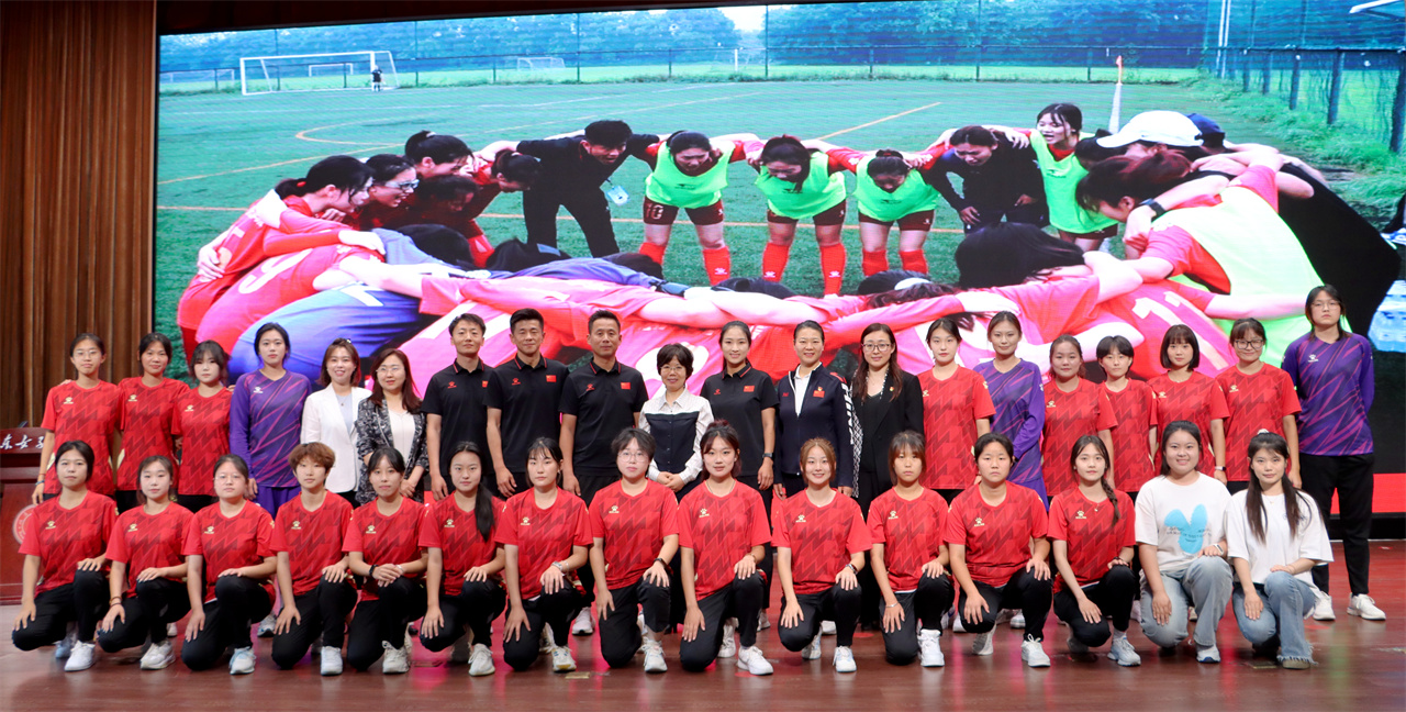 分享会上,用100秒精彩视频回顾了女院“铿锵玫瑰”们在国赛赛场上的飒爽英姿。各学院学生代表为女足教练员、队员献花。学校女足主教练曹斌、队长覃李梅依次上台交流。女足教练员、队员代表向校史馆赠送比赛用球和签名队服,副校长刘恩允上台接受赠予并回赠捐赠证书。