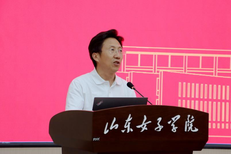 方勇现场致辞并作了一堂党纪教育学习党课。他首先代表团队感谢学校领导的热情接待,他说山东女子学院作为培养女性人才的摇篮,不仅为社会输送了大量优秀的女性人才,而且在推动社会性别平等和女性发展方面做出了贡献。他对双方党建联建共建提出了期望,希望双方通过党建引领、共建,实现资源共享、优势互补,共同促进新闻传播学科的发展和人才培养。随后,他针对坚守党纪党规、筑牢思想防线做了一堂深刻生动、具有实效的党课,并结合社科工作的特殊性对党员如何遵规守纪进行了细致解读。