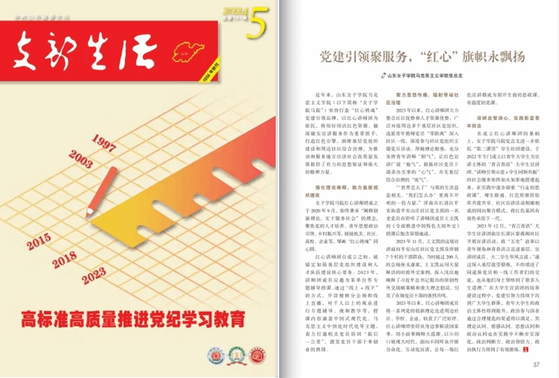 日前,《支部生活》2024年第5期刊发学校马克思主义学院党总支党建工作典型经验《党建引领“聚”服务,红心旗帜永飘扬》。全文如下: