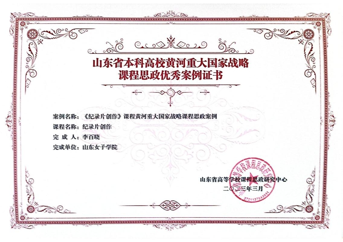 打造优质教学团队,发挥“领头羊”效应,推进品牌课程“群组化”发展。学院依托广播电视学、影视摄影与制作、文化产业管理专业组建影像与新媒体、文化创意与策划两个本科专业教学团队。《纪录片创作》《短片创作》2门本课程获批山东省一流本科课程;肖辉馨教师团队获得山东省高校教师教学创新大赛一等奖,实现我校该项比赛历史性突破。肖辉馨教师团队立项山东省本科教学改革重点项目1项;陈亮教师团队立项山东省职业教育教学改革项目1项;学院教师获教育部产学合作协同育人项目13项,校级教改项目6项;获学校课程思政教学设计一等奖4项、二等奖2项;学院13门课程获得校级课程思政示范课立项,3项山东省本科高校黄河重大国家战略课程思政优秀案例。校级金课6门。首届中国女子高等院校联盟教学成果奖1项,山东女子学院2020年度校级教学成果二等奖1项。